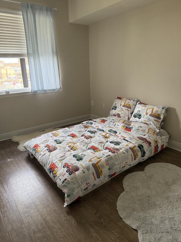 Set against a city skyline, dump trucks, cranes, bulldozers, and traffic cones pattern our sham in zippy shades of yellow, orange, green, blue, red, and gray. The construction never stops… even when your favorite little builder is fast asleep! Sewn of organic cotton percale, this earth-friendly collection has a cool, crisp hand that gets better with every wash.