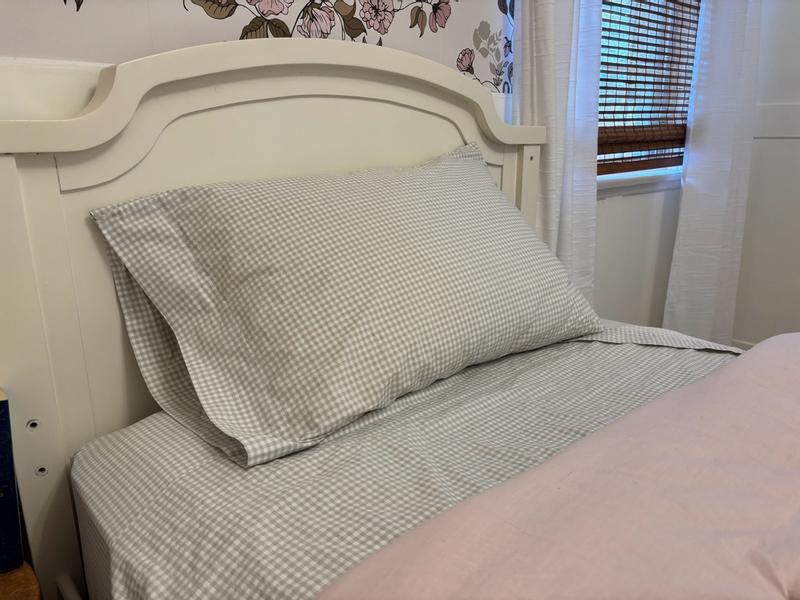 You and your little one will adore the classic good looks—and eco-conscious construction—of our kid's Ditsy Gingham Classic Organic Cotton Percale Bed Sheet Set. It's as good for your child as well as the planet.