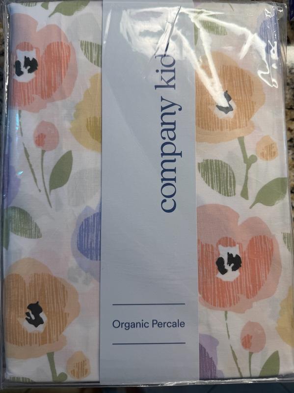 Pastel Poppies Classic Cool Organic Cotton Percale Bed Sheet Set - White Multi, Twin