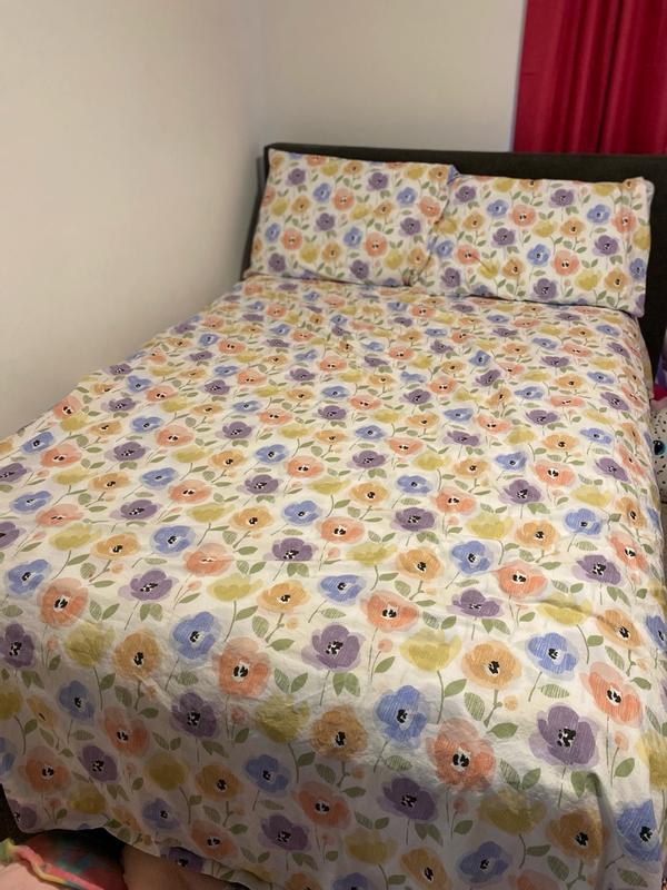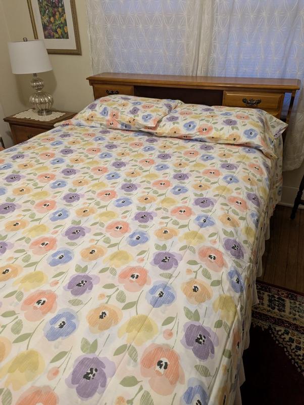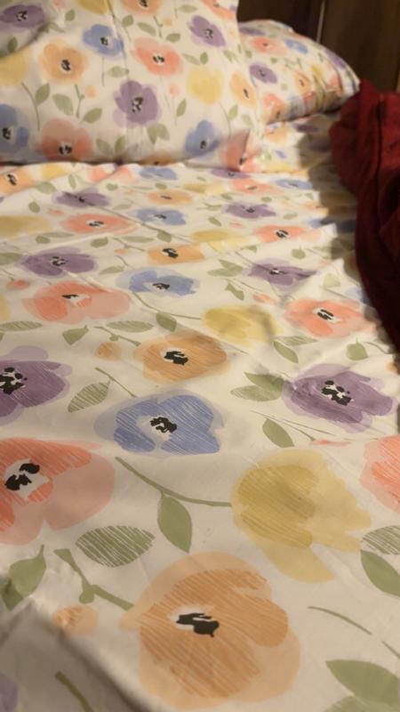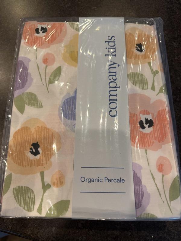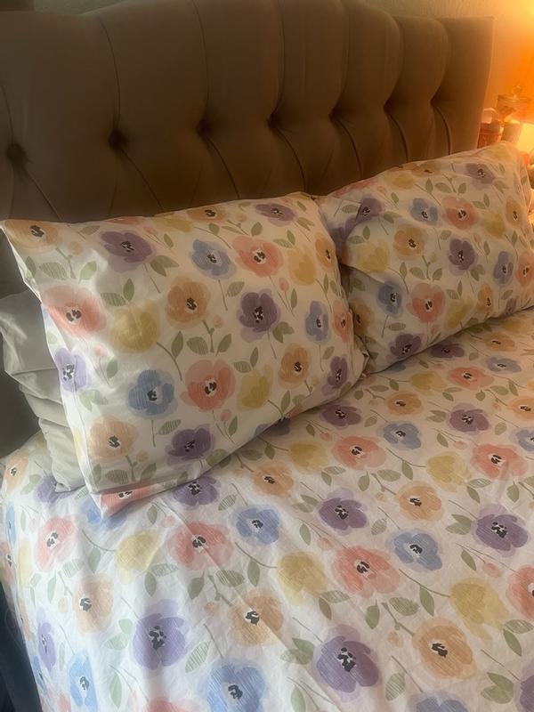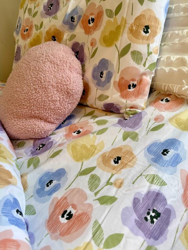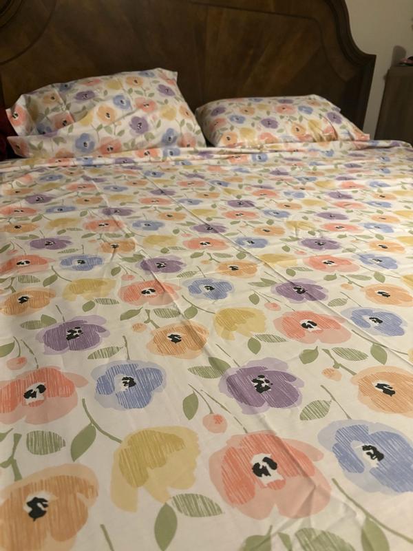 Pastel Poppies Classic Cool Organic Cotton Percale Bed Sheet Set - White Multi, Twin