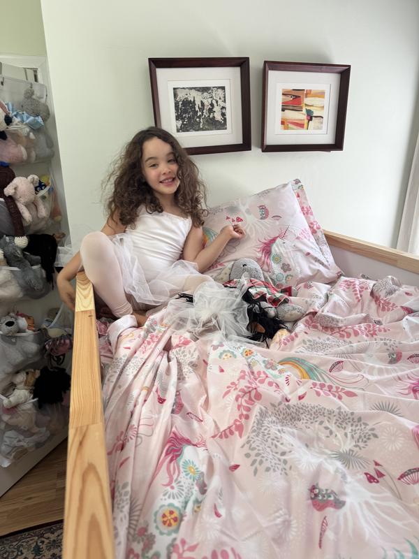 The product is praised for its high quality, softness, and breathability. Customers find the pastel floral print design soothing and refreshing. The sheets are described as comfortable, cool, and durable, maintaining their quality over time. While marketed as "Kids" sheets, the design and quality appeal to adults as well. Overall, the product provides an excellent sleeping experience.