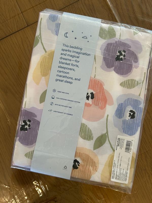 Featuring a contemporary floral, the sheet set from our Pastel Poppies collection is a fun, fresh way to brighten your little one’s bed. It features cheerful pansies in a soft, muted palette of lavender, buttercup, ballet pink, sage green, and peach on a crisp white ground. Sewn of organic cotton percale, this earth-friendly collection has a cool, crisp hand that gets better with every wash.