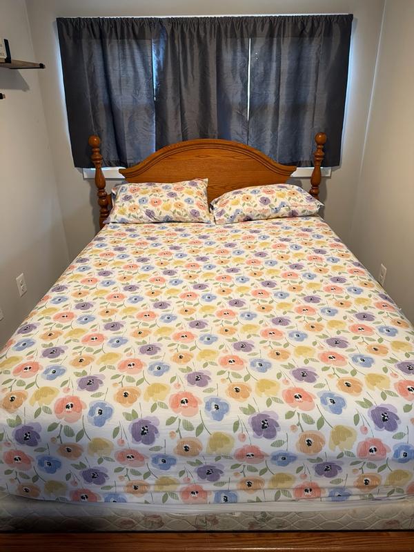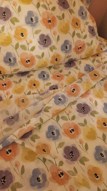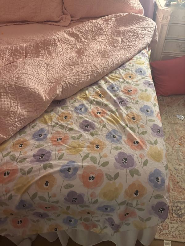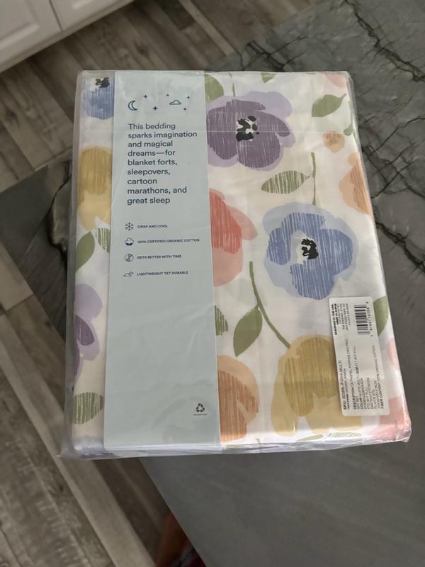 Pastel Poppies Classic Cool Organic Cotton Percale Bed Sheet Set - White Multi, Twin