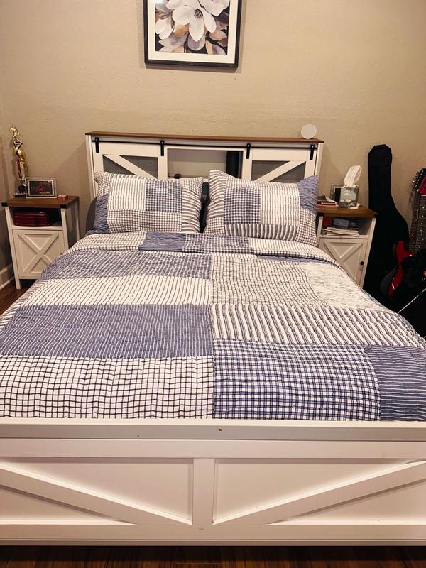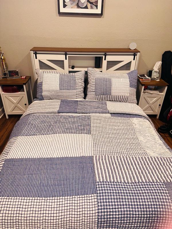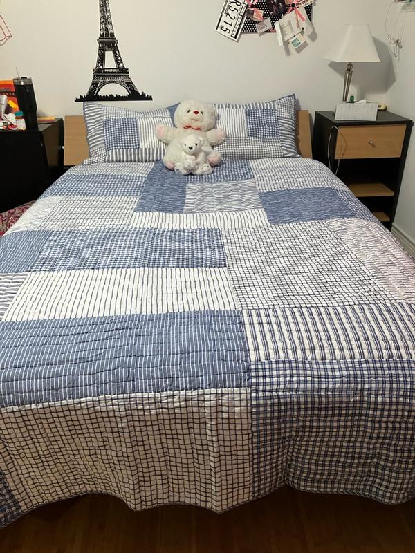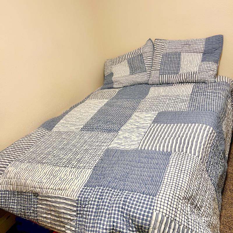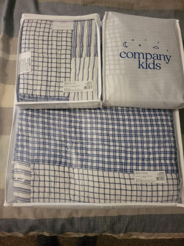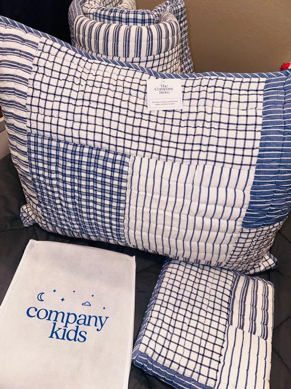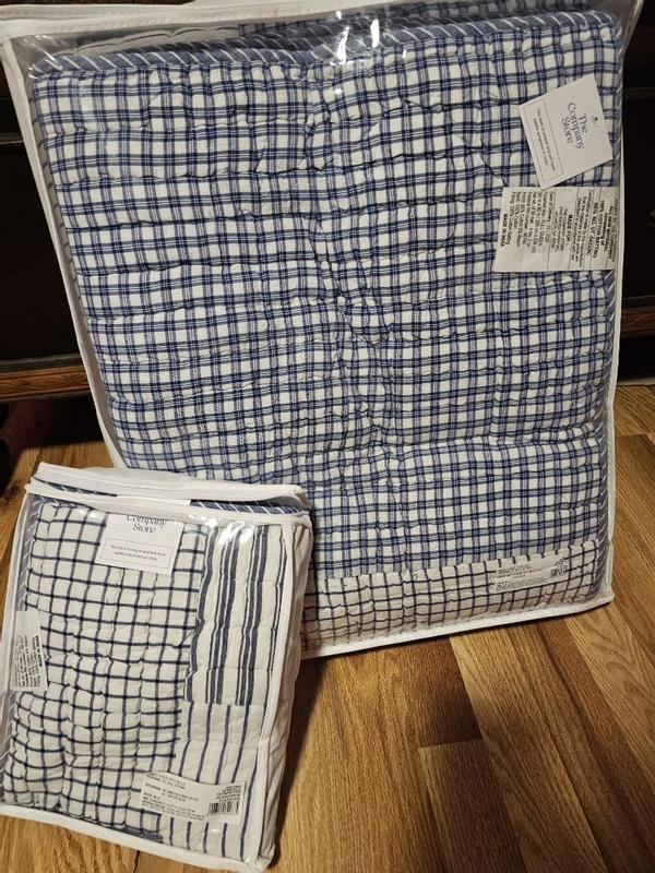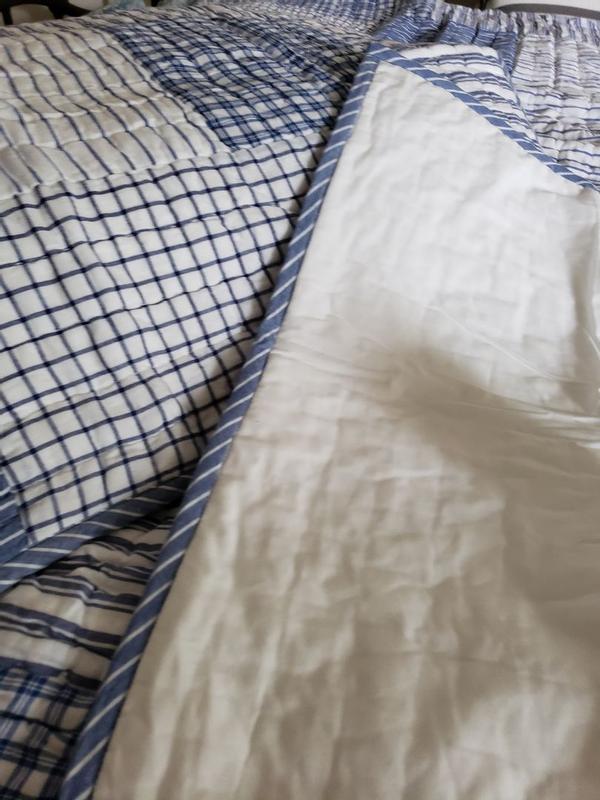 A timeless look for kids’ room, this handcrafted patchwork is a classic mix of stripes, checks and plaids in versatile denim blue, navy and white. Sewn of yarn-dyed cotton for long-lasting color and finished with striped binding, the lightweight quilt makes a great year-round layer.