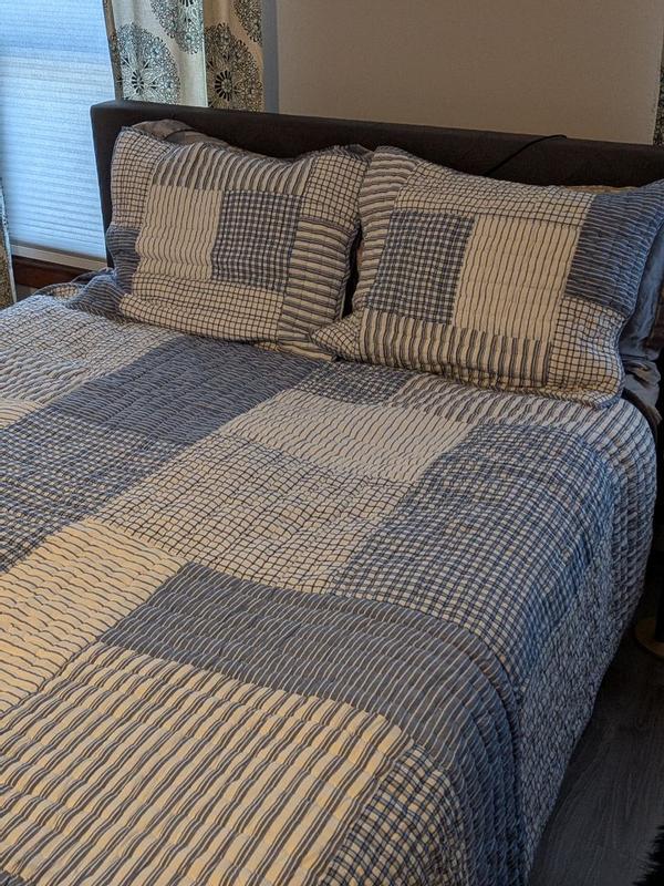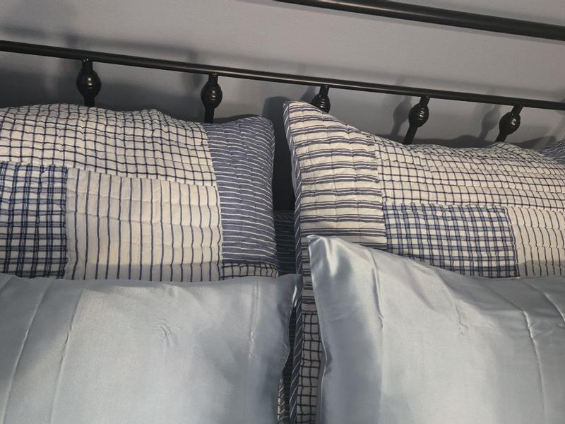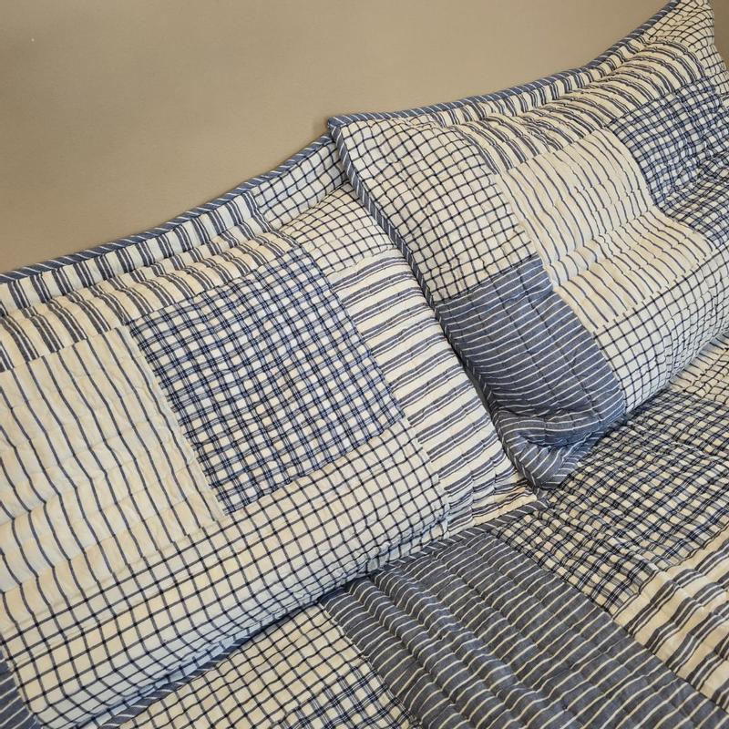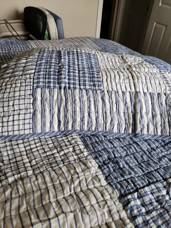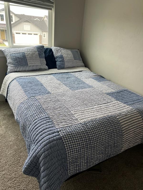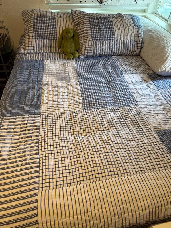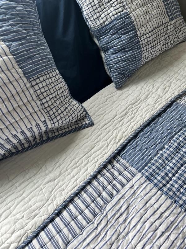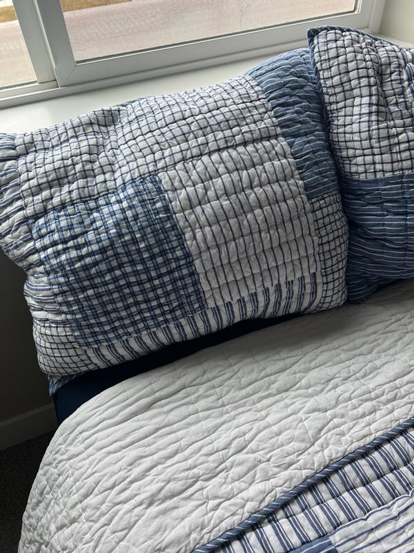 Stripe Block Yarn-Dyed Patchwork Quilted Sham - Blue, Standard