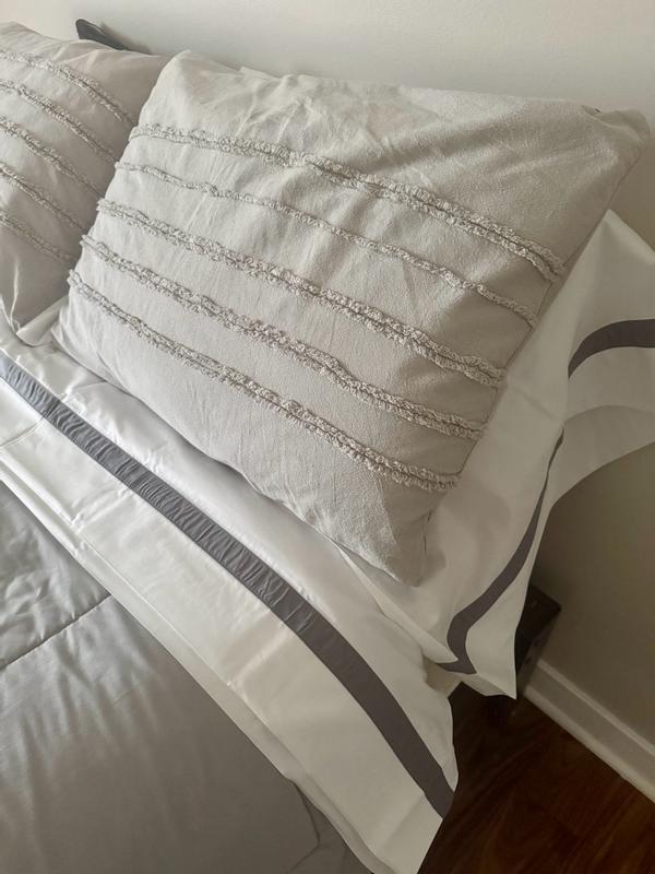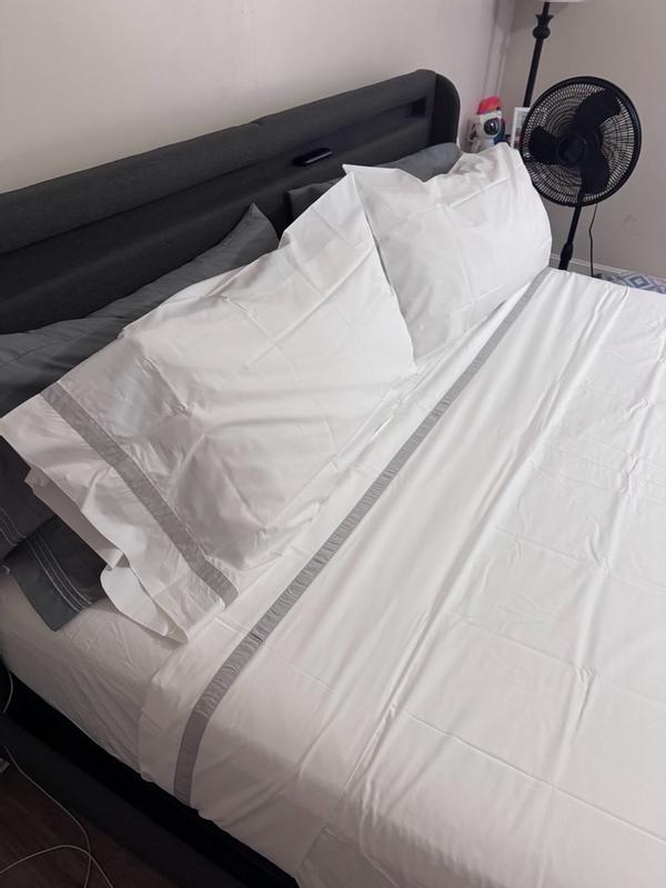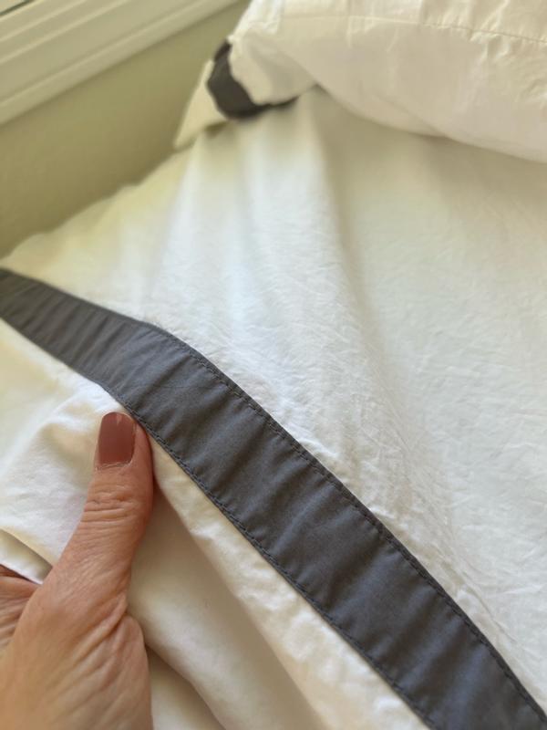 Contrast Border Premium Cool Supima® Cotton Percale Bed Sheet Set - Pewter, King