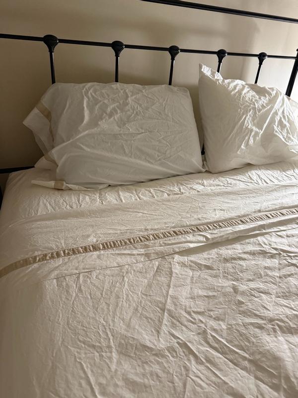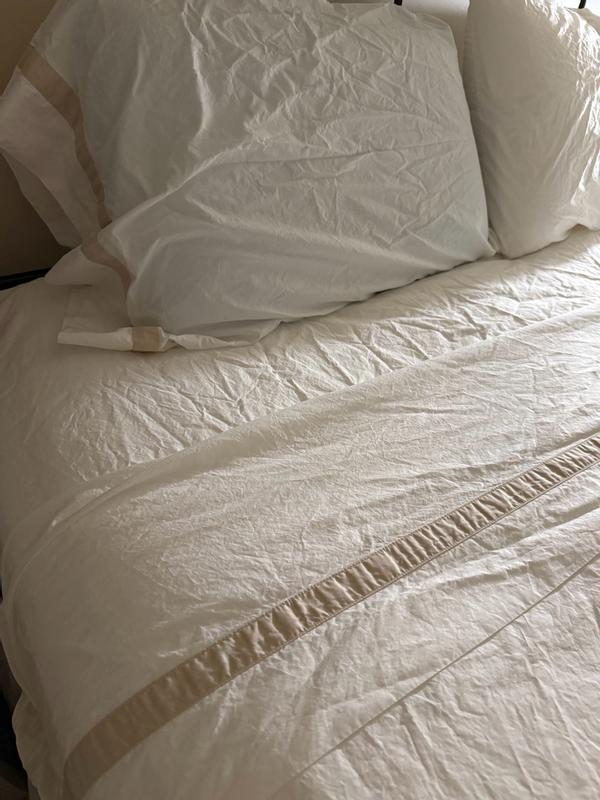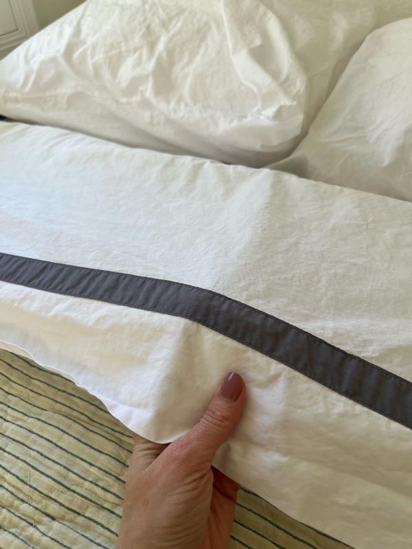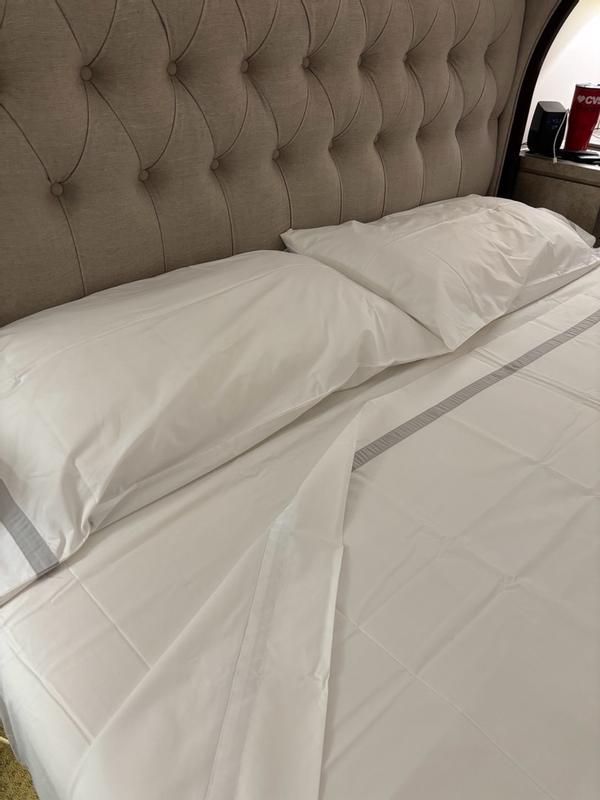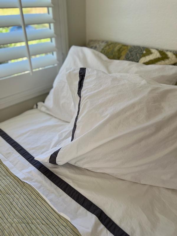 Contrast banding at the hem adds polished detail to the classic elegance of this opulent sheeting. Inspired by the luxury bed linens you’d find in a well-appointed hotel, our cotton percale sheet set and pillowcases, sold separately, are made from long-staple Supima® cotton, the finest American-grown cotton available. Soft, crisp and breathable, it will continue to soften and get better over time.