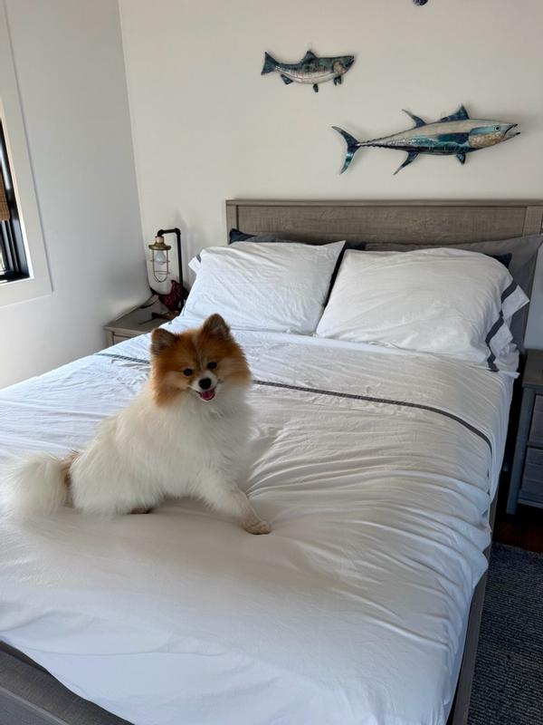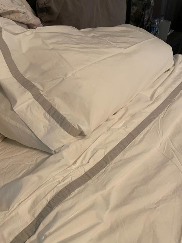 Contrast banding at the hem adds polished detail to the classic elegance of this opulent sheeting. Inspired by the luxury bed linens you’d find in a well-appointed hotel, our cotton percale sheet set and pillowcases, sold separately, are made from long-staple Supima® cotton, the finest American-grown cotton available. Soft, crisp and breathable, it will continue to soften and get better over time.