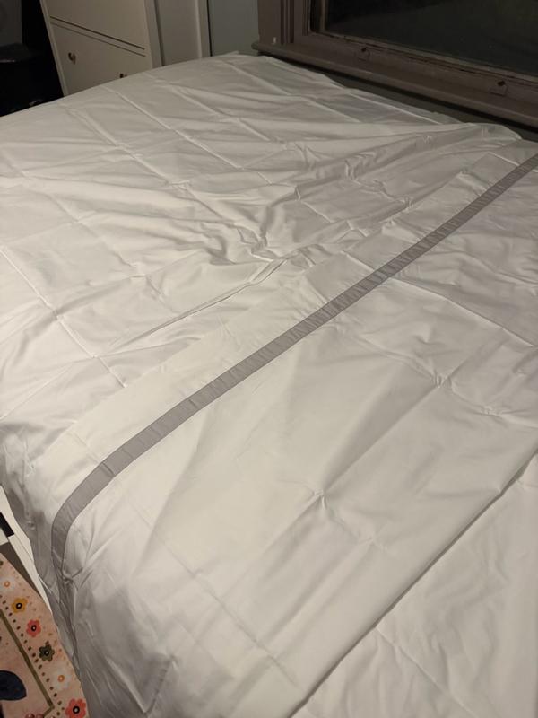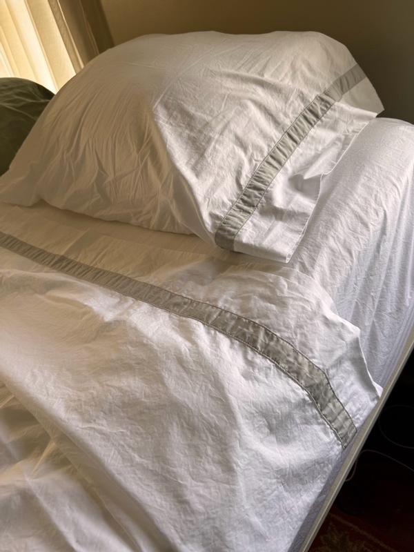 Contrast banding at the hem adds polished detail to the classic elegance of this opulent sheeting. Inspired by the luxury bed linens you’d find in a well-appointed hotel, our cotton percale sheet set and pillowcases, sold separately, are made from long-staple Supima® cotton, the finest American-grown cotton available. Soft, crisp and breathable, it will continue to soften and get better over time.