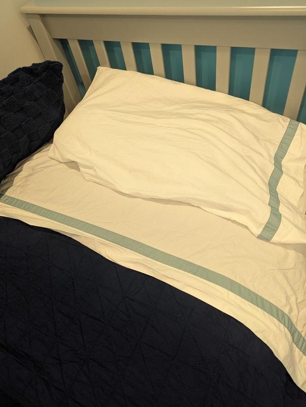 Contrast banding at the hem adds polished detail to the classic elegance of this opulent sheeting. Inspired by the luxury bed linens you’d find in a well-appointed hotel, our cotton percale sheet set and pillowcases, sold separately, are made from long-staple Supima® cotton, the finest American-grown cotton available. Soft, crisp and breathable, it will continue to soften and get better over time.