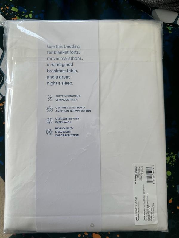 Our Legends Hotel™ Double Border Supima® Cotton Sateen Duvet Cover evokes the sort of quiet luxury you'd find at a five-star hotel—and is one of our favorite ways to create a well-made bed. In a buttery smooth sateen weave of luxurious, American-grown long-staple Supima® cotton, the white field keeps things looking pristine, while a printed double-contrast border frames each piece with elegant color. This duvet cover is classic paired with white sheets, or go bold by coordinating with a matching color from our Wrinkle-Free Sateen bedding, sold separately.
