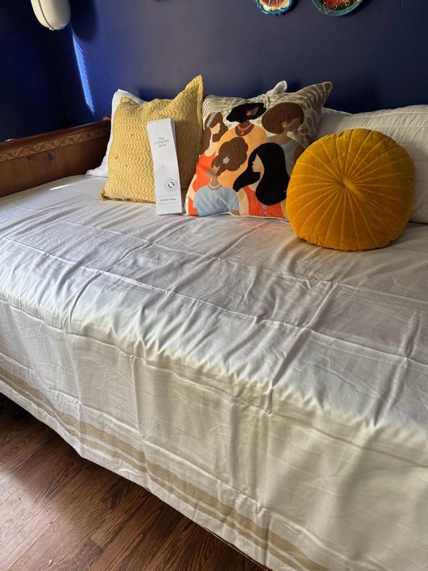 Our Legends Hotel™ Double Border Supima® Cotton Sateen Duvet Cover evokes the sort of quiet luxury you'd find at a five-star hotel—and is one of our favorite ways to create a well-made bed. In a buttery smooth sateen weave of luxurious, American-grown long-staple Supima® cotton, the white field keeps things looking pristine, while a printed double-contrast border frames each piece with elegant color. This duvet cover is classic paired with white sheets, or go bold by coordinating with a matching color from our Wrinkle-Free Sateen bedding, sold separately.