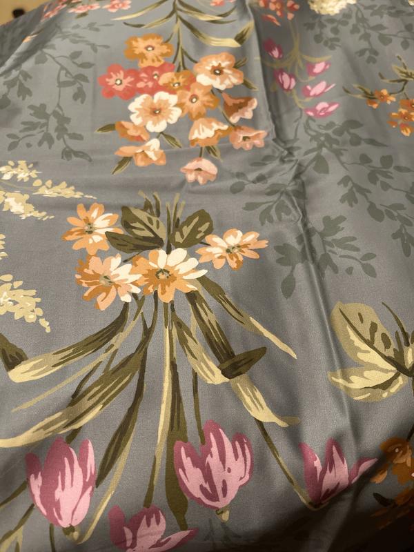 The luxurious Legends Hotel™ Blooming Elegance Wrinkle-Free Sateen Bed Sheet Set is landscaped with a romantic floral, so it's as easy on the eyes as it is to care for. The autumnal palette of amber, brick red, olive, pink, purple and adobe pops against a sage green field. Crafted of buttery-soft and breathable sateen, this bedding collection has a subtle sheen and wrinkle-free finish, and is perfect for all-season comfort.