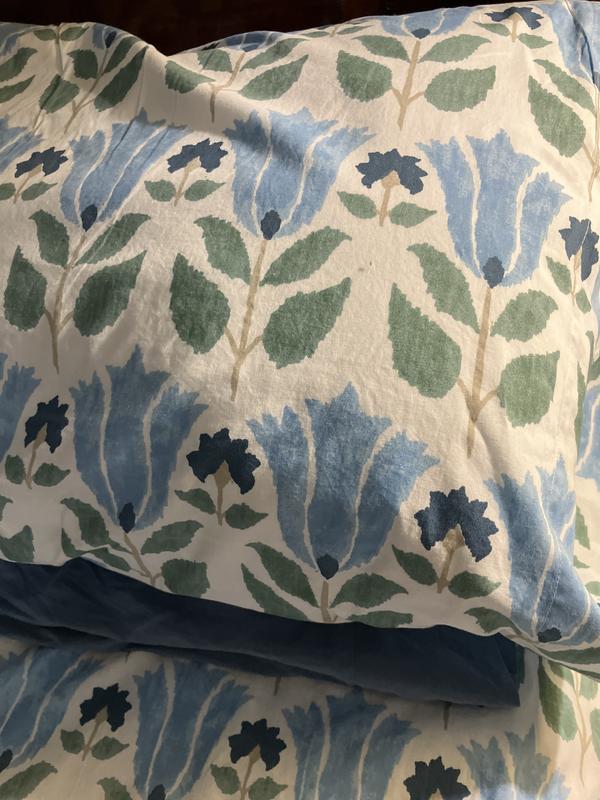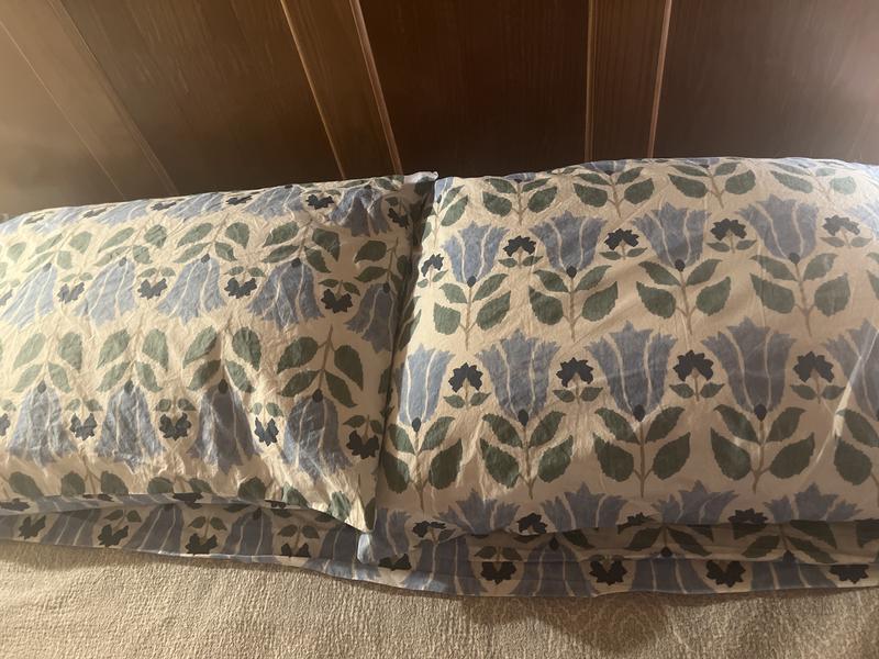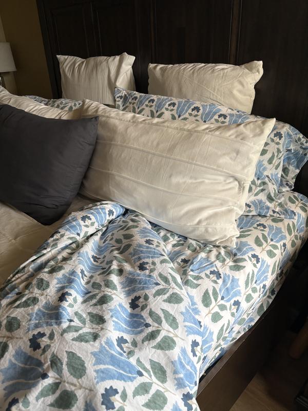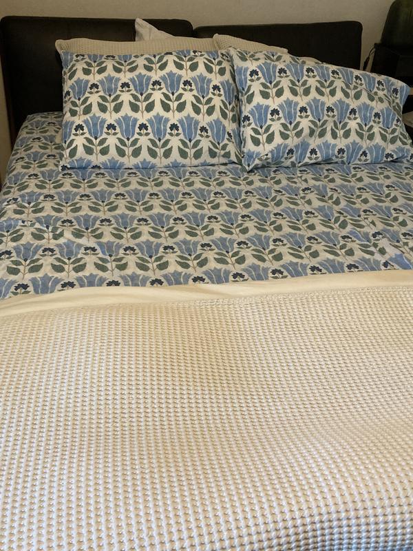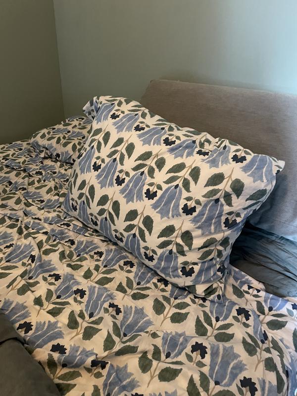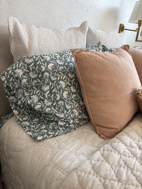 The botanical design of our Ellary Percale Sheet Set is inspired by traditional Indian block-printing techniques and cast in shades of ink, chambray blue, and green. We’ve played with the scale to offer three iterations of the motif, making this bedding beautiful to use on its own or layered together. Love the look? These sheets also coordinate with our Ellary patchwork quilt (sold separately).