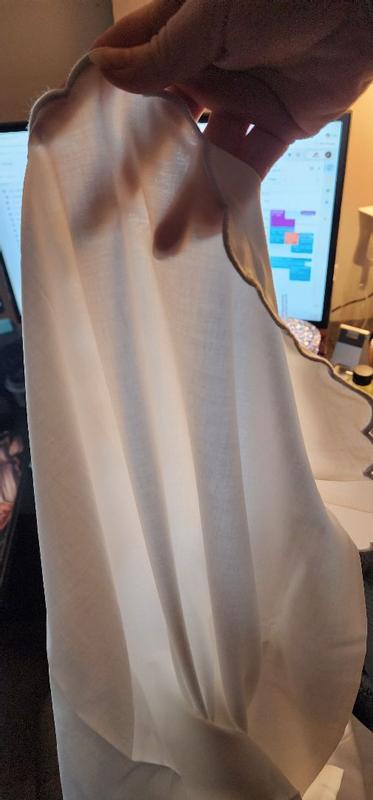 - Scalloped edges are finished with embroidered trim