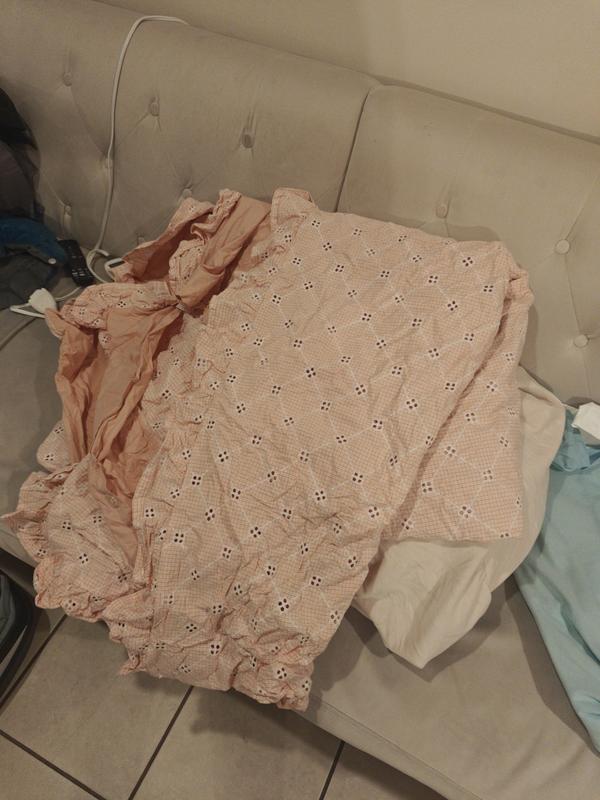 We love how this yarn-dyed cotton percale duvet cover offers an unexpected mix of romantic ruffles and eyelet with timeless mini-checks. Woven of yarn-dyed cotton percale for a cool, crisp hand and long-lasting color, it coordinates beautifully with our Clemencia Percale bedding (sold separately) for fresh pattern play.