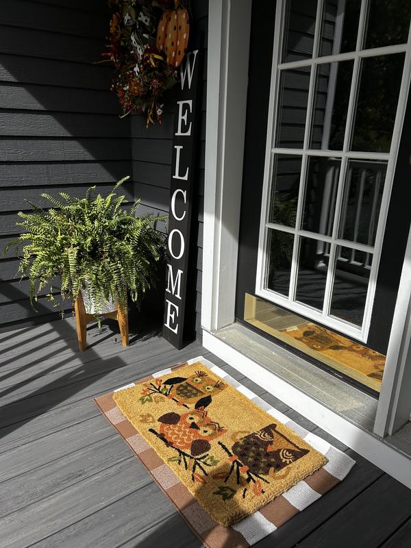 Give your doorstep a fresh, seasonal update with a decorative natural coir door mat that features a fall-inspired print. Our novelty door mats are handcrafted of natural coir, a durable fiber derived from coconut husks. Great for an entryway, mudroom, or covered outdoor area.