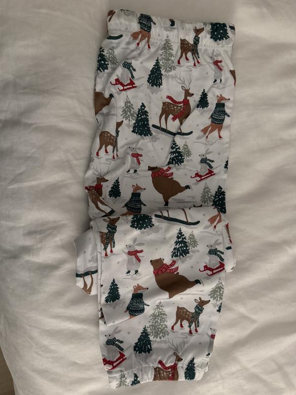 Start a fun tradition for the whole family. Our supersoft Company Cotton™ Matching Family Flannel Women's Jogger Pants PJ Set is back for the holiday season in a crop of festive new prints. Choose from forest animals on ice skates (Winter Skating Animals), stylized reindeer set against a rich navy ground (Reindeer), and well-dressed dogs romping on a forest green field (Holiday Pups).