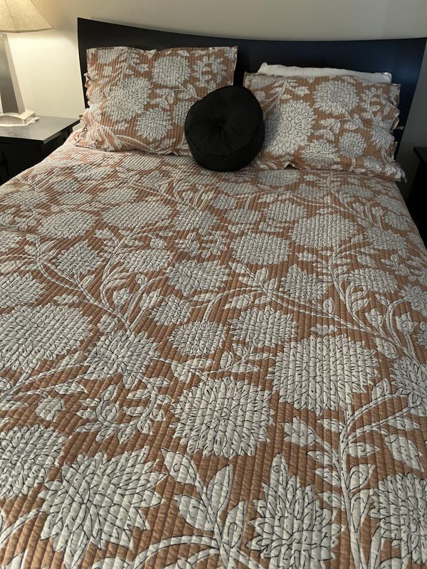 White sketchbook chrysanthemums trace the washed Clay or Blue ground of our lightweight cotton voile quilt. Reversing to the opposite coloration on the back for an alternative look, it’s beautiful layered atop our coordinating Felicana Geo percale bedding (sold separately). Handcrafted by skilled artisans and washed for lived-in softness so it's as comfortable as it is beautiful.