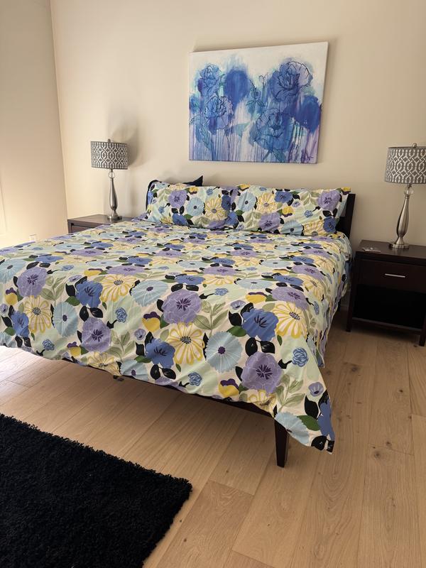 There’s so much to love about our Floral Harmony Cotton Percale Duvet Cover, from the oversized blooms and sophisticated color palette to the fabric’s cool, crisp hand. Rendered in shades of lilac, ultramarine, yellow, sky blue, sage, and leaf green, this duvet cover coordinates with our Floral Harmony shower curtain (sold separately). Our breathable percale bedding collection is an excellent choice for year-round use and hot sleepers.