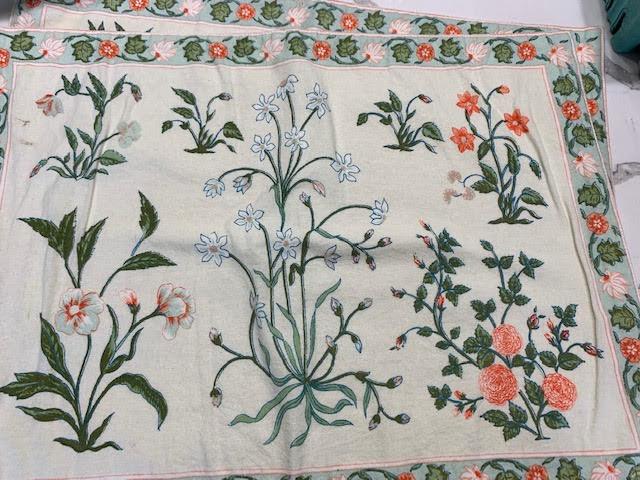 Bring your table to life—whether it’s for a casual brunch or dressed-up dinner. Our Company Cotton™ Garden Floral Placemats get their table-brightening style from a scrolling design in shades of gold, sky blue, chambray, navy, and cream. Set of 4.