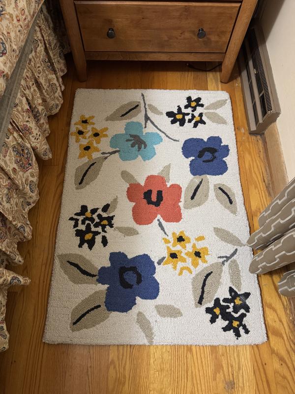 Fabulous for indoor/outdoor spaces, our hand-hooked rugs are updated for summer in four exuberant new prints: songbirds on flowering branches (Birds), night-blooming wildflowers (Flowers), cheery vining dahlias (Dahlias) and stylized blue tulips (Ellary). Create a coordinated look by pairing them with our matching Hand-Hooked PET pillows (sold separately).