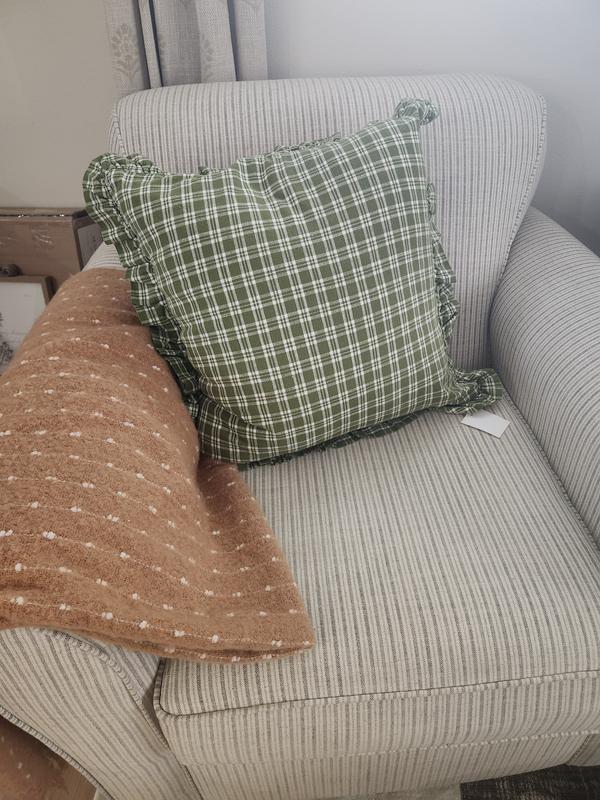 This Heather Taylor Home Classic Plaids Decorative Square Pillow Cover adds charm to your space in your choice of green and white or russet with sky blue. Finished with a playful ruffle trim, this pillow cover is naturally soft with a lived-in feel, bringing cozy comfort and timeless style to any room. Elevate your everyday life with charming, cottage-inspired designs created by Heather Taylor Home, all crafted from premium fabrics for unmatched comfort. Part of our Heather Taylor Home x The Company Store collection.