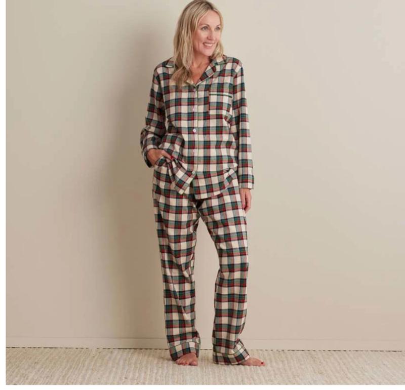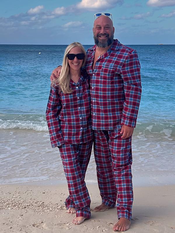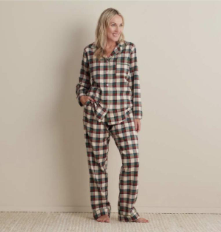 We've partnered with Heather Taylor Home to update our Family Flannel Women's Button-Down PJ Set with two beautiful new plaid designs: A chambray-blue-and-red plaid (Nantucket) or a blue, green, red, black, and beige plaid (Idyllwild).