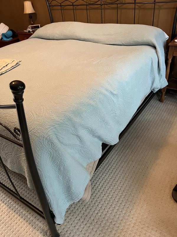 Scrolled with grand-scale paisleys, this elegant matelassé coverlet offers just the right amount of texture and pattern to the bed, layering beautifully with prints and solids alike. Crafted in Portugal of decadently soft cotton that works great on top of bed or under a comforter when the weather gets cooler.