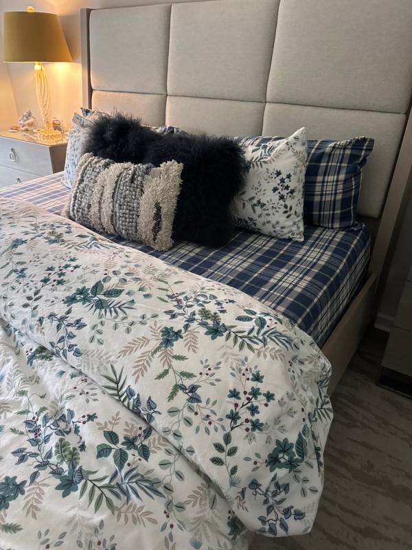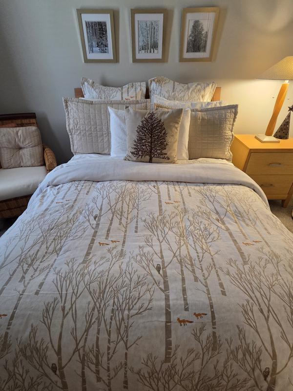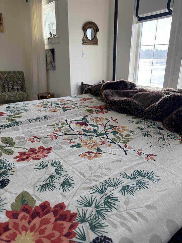 Promising pure coziness for chilly nights, our decadently soft Company Cotton™ Holiday Print Velvet Flannel Duvet Cover is back in fresh, seasonal designs: a field of wildflowers (Botanical Grace); a snowy pine woodland (Whimsical Wilds); tossed flowers and pine boughs (Vintage Blooms); a wintry forest dotted with wildlife (Wintery Forest); and collaged winterberries and leaves (Berries and Leaves). Dress up your bed for the season and beyond. Woven in Portugal, this cotton flannel is brushed and sheared, giving it a velvety finish that keeps getting better over time to create the coziest bedding ever.