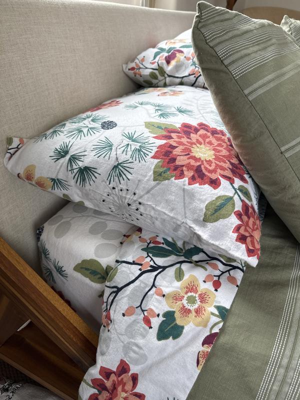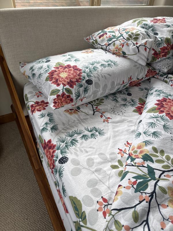 Promising pure coziness for chilly nights, our decadently soft Company Cotton™ Holiday Print Velvet Flannel Pillowcase Set is back in fresh, seasonal designs: a field of wildflowers (Botanical Grace); a snowy pine woodland (Whimsical Wilds); tossed flowers and pine boughs (Vintage Blooms); a wintry forest dotted with wildlife (Wintery Forest); and collaged winterberries and leaves (Berries and Leaves). Dress up your bed for the season and beyond. Woven in Portugal, this cotton flannel is brushed and sheared, giving it a velvety finish that keeps getting better over time to create the coziest bedding ever.