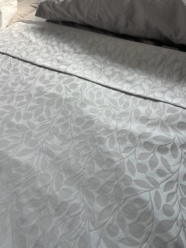 This jacquard-woven Supima® cotton sateen flat sheet gets a burst of natural beauty and subtle color from a yarn-dyed motif of tonal vining leaves. An elegant choice for the primary suite, this collection is jacquard woven in a lustrous sateen weave of Supima® cotton, the finest American-grown cotton available. Our easy-care bedding is heavy enough for cold temperatures and sleepers, but lightweight enough for year-round use.