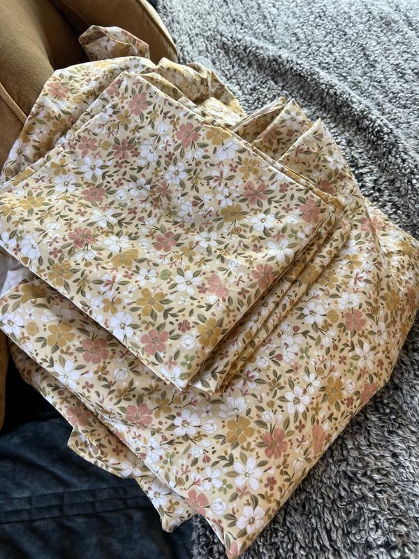 Hit the refresh button for spring. Heralding the warmer days to come, hundreds of flowers are sprinkled across a smooth cotton in your choice of colorways: a soft pink (Beige), sunny yellow (Gold) and soft Blue. Crafted of buttery-soft and breathable sateen this bedding collection has a subtle sheen that’s perfect for all-season comfort.