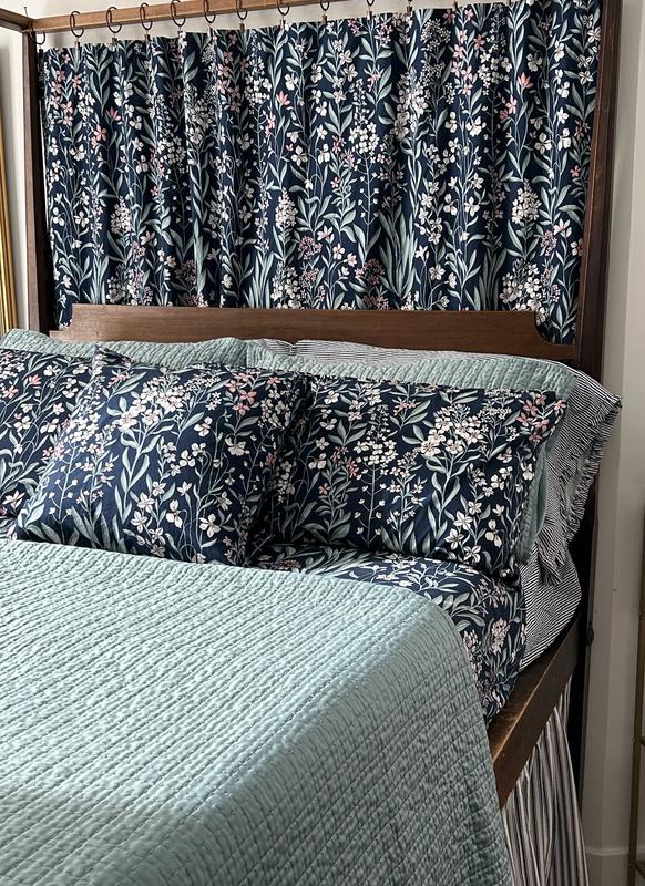 Our Julienne Cotton Percale Flat Bed Sheet showcases two contemporary florals in your choice of navy or taupe and is designed to mix, match, and layer. For yet another layer of intriguing pattern play, the Julienne Mini Floral duvet cover, sham, and comforter reverse to a complementary pinstripe. Our breathable percale bedding collection is an excellent choice for year-round use and hot sleepers.