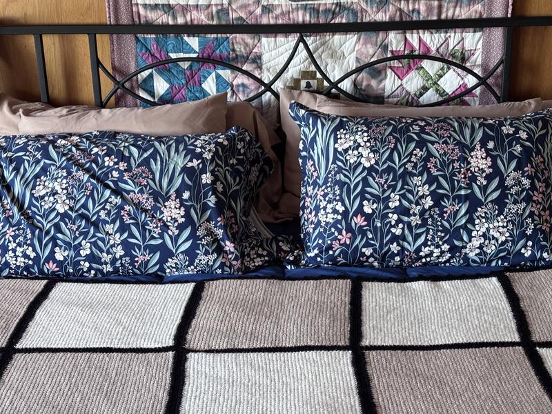 Julienne Classic Cool Cotton Percale Reversible Sham - Mini Floral Navy, Euro
