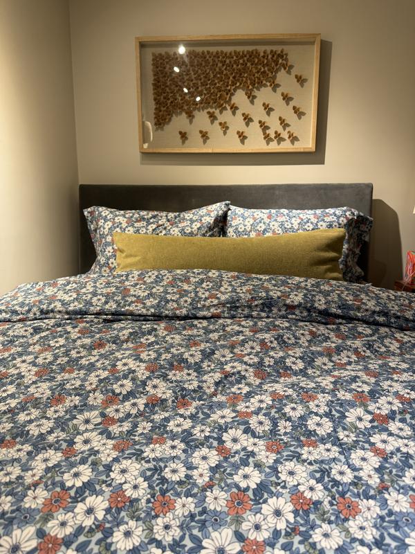 Designed to mix, match, and layer, our artful Julienne Cotton Percale Duvet Cover showcases two contemporary florals in your choice of navy or taupe.For yet another layer of intriguing pattern play, the Julienne Mini Floral duvet cover, sham, and comforter reverse to a complementary pinstripe. Our breathable percale bedding collection is an excellent choice for year-round use and hot sleepers.