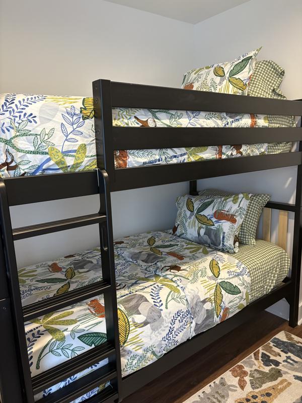 Your little ones will be simply wild for this playful jungle print kids' duvet cover set that showcases a menagerie of friendly animals amidst an overgrown jungle. This original print is illustrated in cheerful shades of blue, green, orange, gold, and gray on a white ground. Sewn of organic cotton percale, this earth-friendly collection has a cool, crisp hand that gets better with every wash.
