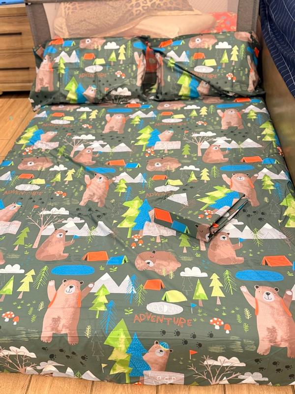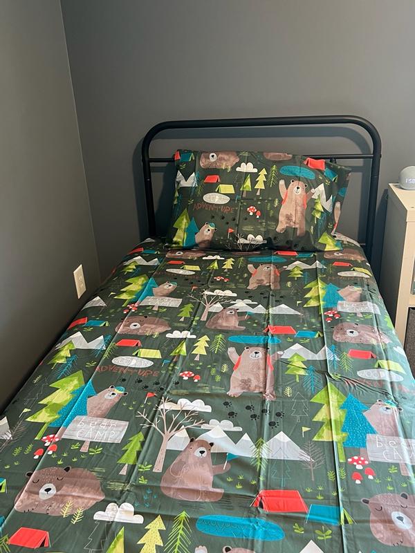Bear Camp Classic Cool Organic Cotton Percale Bed Sheet Set - Green Multi, Twin