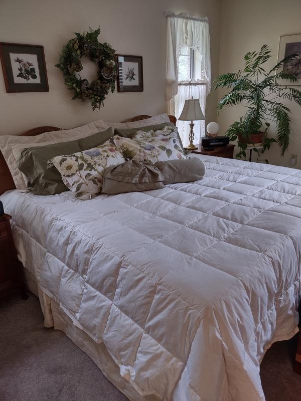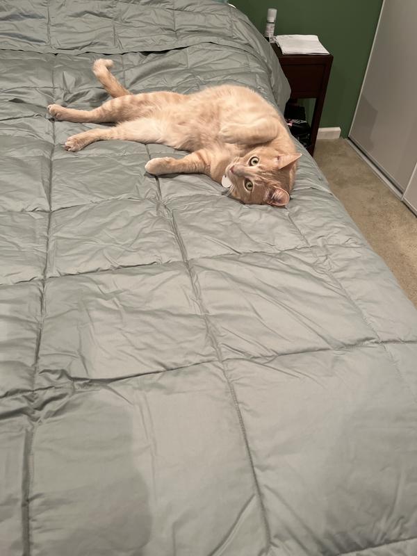 This lightweight comforter/blanket is praised for its excellent quality, comfort, and warmth, making it suitable for transitional seasons. Many customers find it provides the loft of down without being too heavy, and it can be used as a bedspread or comforter. The product is generally well-received, though a few customers felt the color differed slightly from the online photos, and some found it too warm for their preferences. Overall, the majority of reviewers were very satisfied with the product.