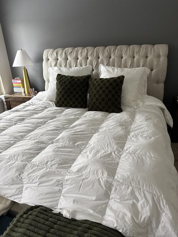 The down alternative comforter provides a soft, luxurious feel and the right balance of warmth without overheating. It is available in various colors and warmth levels to suit different needs. Customers report the comforter maintains its quality and loft even after repeated washing, making it easy to care for. Overall, users are highly satisfied with the product's performance and consider it a reliable choice.
