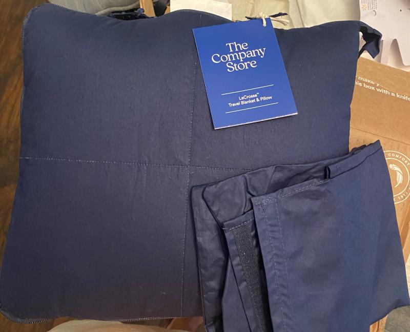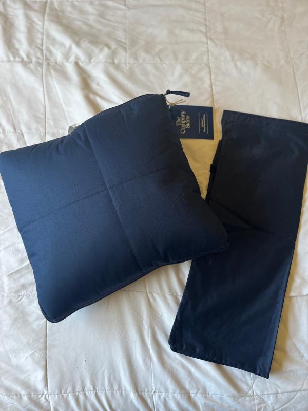- Featuring a travel-sized pillow, quilted throw, bag, and pillow cover, this 4-piece travel set is perfect for getting shut-eye when you’re away from home