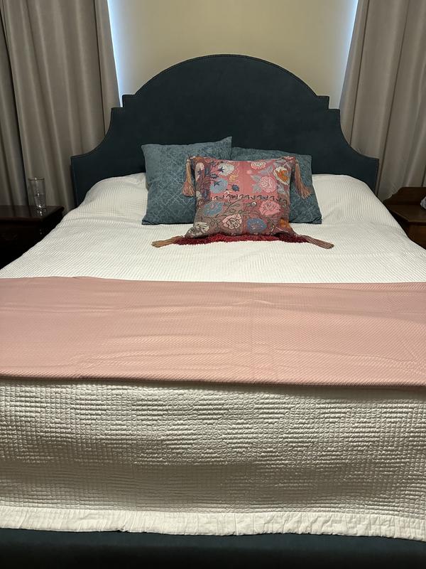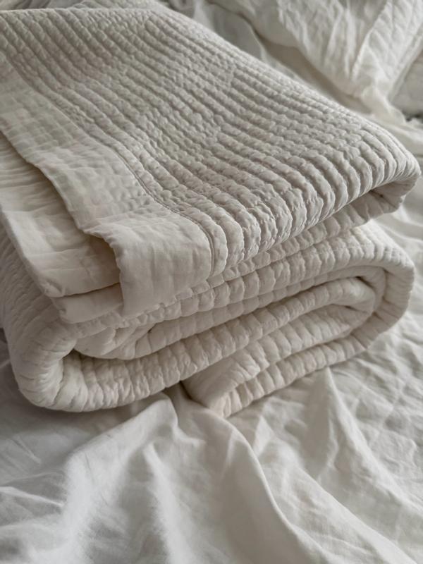 The cotton quilt is described as having a soft, smooth, and breathable fabric that provides a medium weight suitable for year-round use. Customers praised its luxurious, hotel-like feel and appearance, with a crisp, clean look. The quilt is noted for its durable construction, beautiful stitching, and generous size that fits beds well. While some found it initially stiff, most reported it softened up nicely after washing. Overall, the quilt is considered a high-quality, versatile, and aesthetically pleasing bedding piece that provides great value.