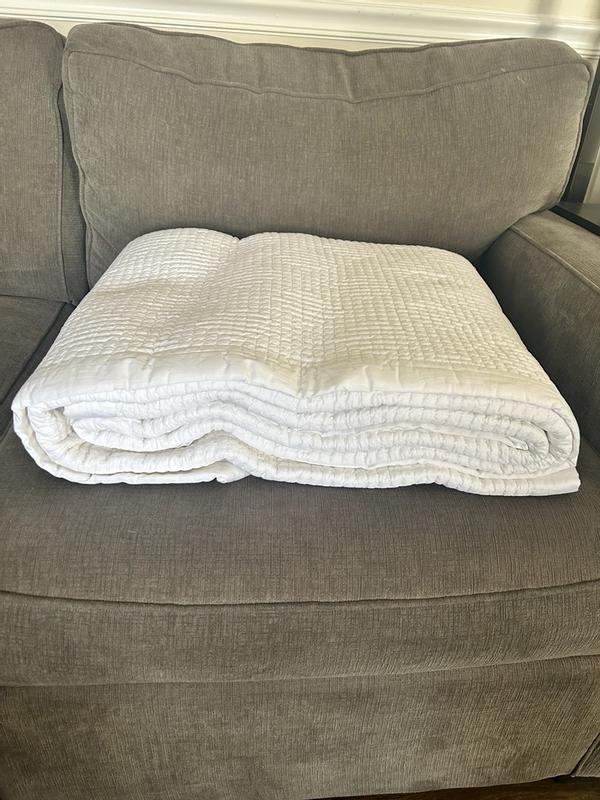 The quilt provides a luxurious and comfortable sleeping experience with its soft, breathable cotton fabric and perfect weight suitable for year-round use. Customers praised the beautiful, crisp white color and the generous size that fits the bed well. The durable construction and elegant hotel-like aesthetic were also highlights. While a few customers found the quilt a bit stiff initially, the overwhelming sentiment was extremely positive, with many describing it as "perfect", "soft", and "high-quality".