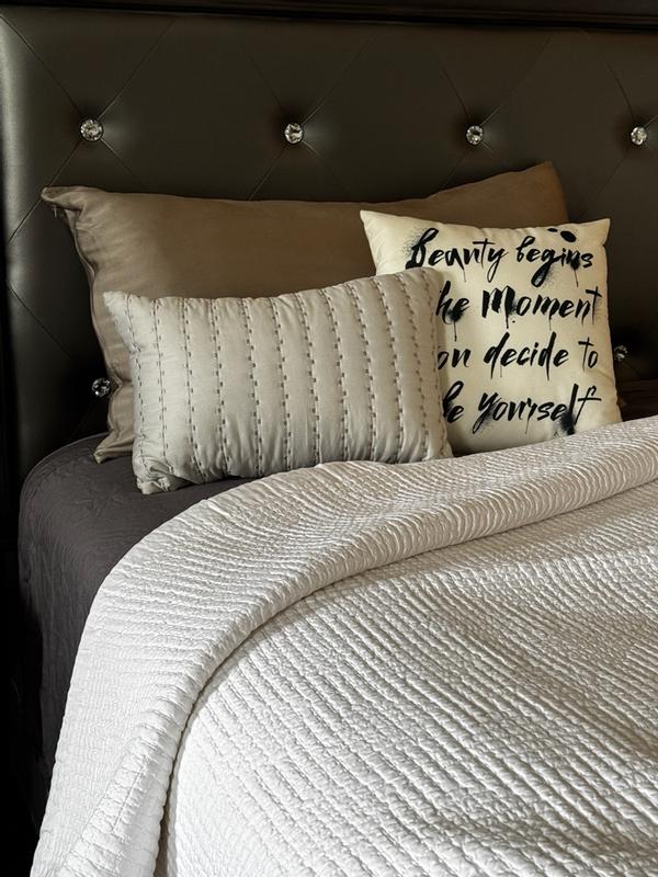 Customers overwhelmingly praise this quilt for its exceptional quality, luxurious 100% cotton sateen fabric, and versatile design. Reviewers consistently highlight the soft, breathable material, precise stitching, and perfect mid-weight that works year-round. Many appreciate the clean, classic cream appearance that brightens bedrooms and creates a hotel-like aesthetic. The generous sizing lays flat without bunching, and customers note it washes well, resists shrinkage, and maintains its bright color. Nearly all reviewers consider it a durable investment piece worth recommending, with only rare mentions of minor sizing preferences.