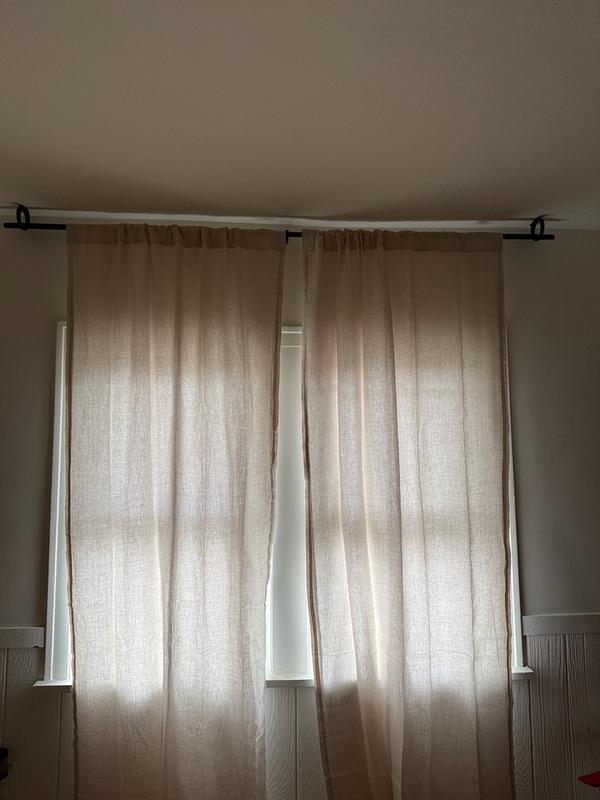 The linen curtains are described as beautifully crafted with a soft, natural texture that creates a relaxed, airy feel. Reviewers highlight the curtains' ability to filter light while providing privacy, and praise the premium fabric quality with a built-in liner that helps them hang smoothly and diffuse light. The curtains are noted for their versatility, as they can be used alone or paired with a separate blackout liner. While some consider the curtains to be on the pricier side, the general consensus is that the quality and aesthetic value make them a worthwhile investment.