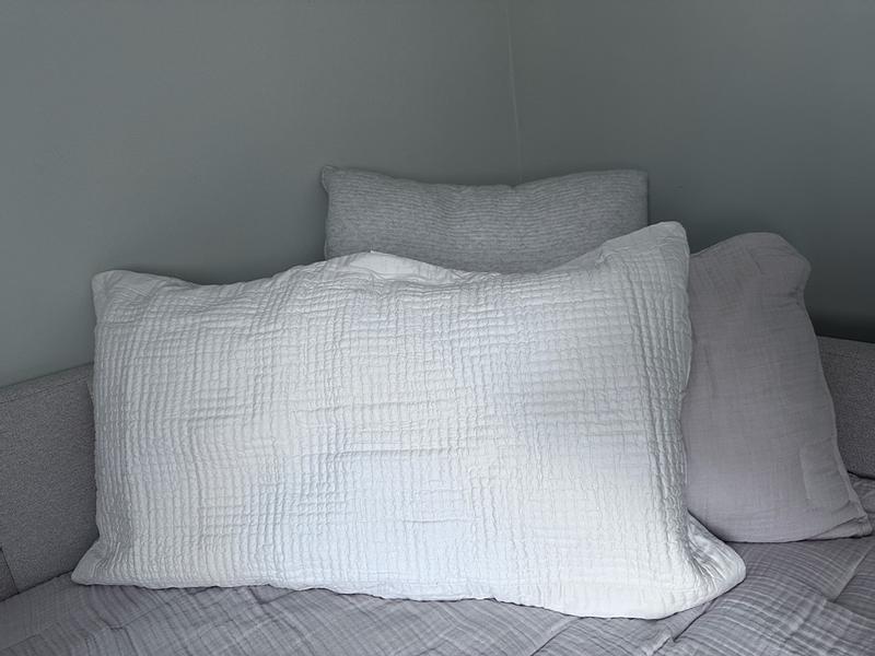 Customers overwhelmingly praise the pillow shams for their luxurious feel and exceptional quality. Most highlight the thick, soft 100% cotton fabric with a smooth sateen finish that feels high-end and blocks pillow patterns from showing through. Reviewers consistently commend the meticulous stitching, durability, and how the shams hold their shape perfectly after washing. Many appreciate the elegant white color, subtle geometric quilting, and versatile design that elevates bedroom decor. The center-back tie closures are praised for providing a secure fit. A few note the fabric feels slightly stiff initially or mention minor concerns with the quilted texture, but these isolated observations do not diminish the overwhelmingly positive reception.