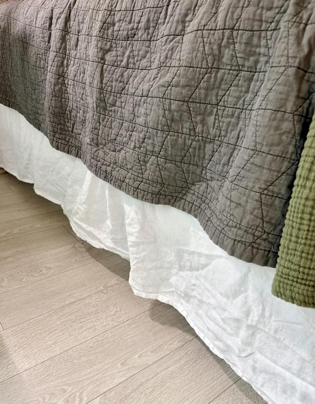 The linen bed skirt is described as a high-quality, elegant, and breathable product that adds a refined touch to the bedroom. Customers praised the soft, luxurious feel of the fabric and its ability to keep the bed cool and comfortable. The bed skirt is said to fit well and drape beautifully, though some noted it can arrive wrinkled and may require ironing or steaming. A few reviewers mentioned the linen material can be a bit see-through. Overall, the product is widely regarded as a stylish, comfortable, and durable addition to any bedding set.