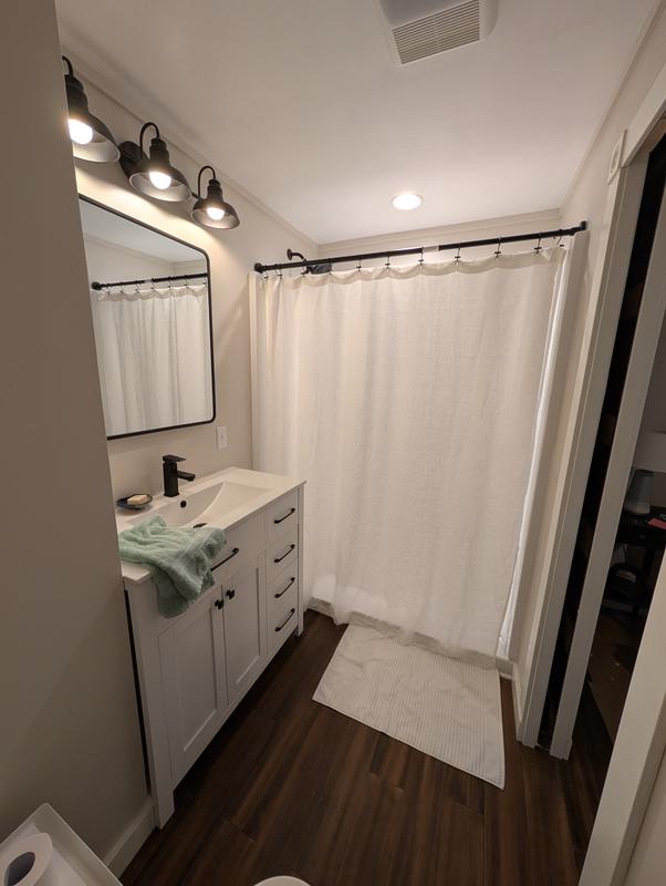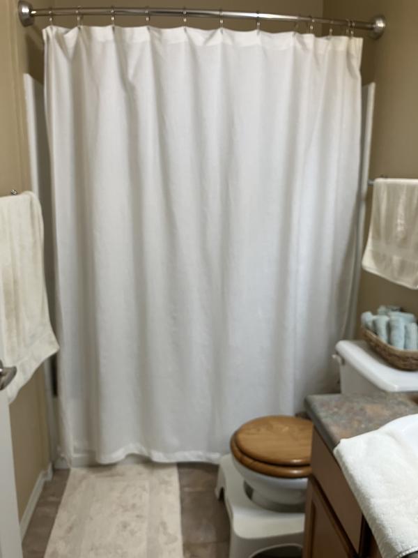 - Shower curtain has a button-hole top