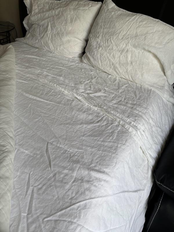 Premium Breathable Washed Linen Solid Bed Sheet Set - White, Queen