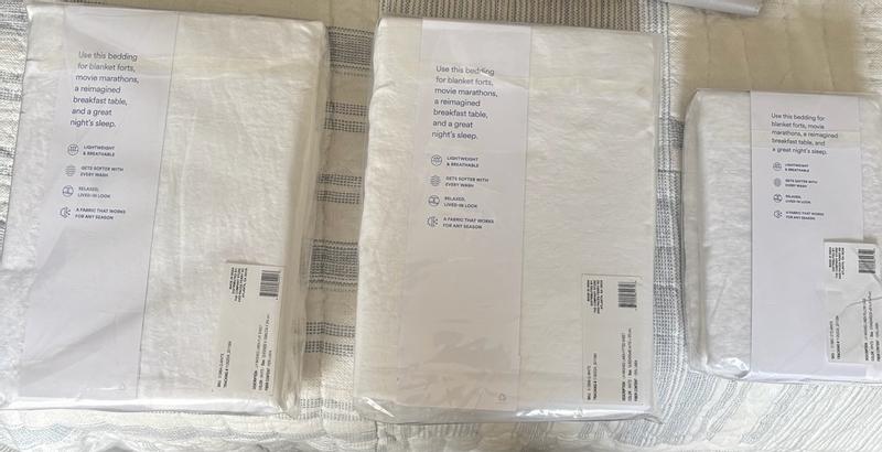 - Entire collection includes a flat sheet, fitted sheet, pillowcases, duvet cover, shams, bed skirt and shower curtain, each sold separately